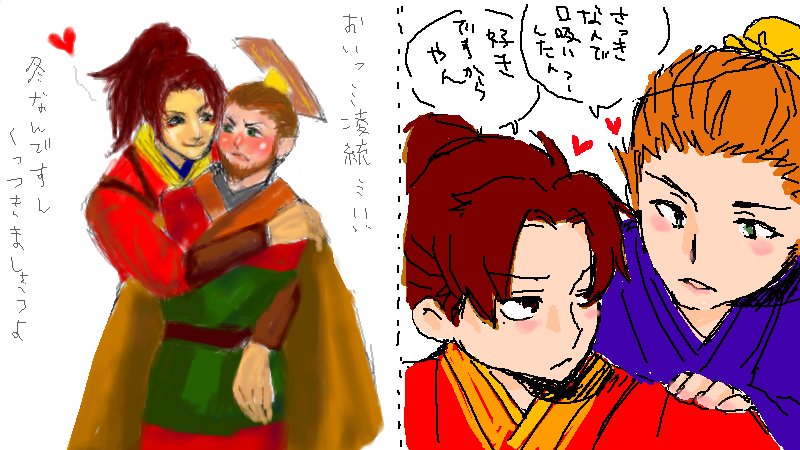 昨晩群馬に帰って参りました。 …寒い!!寒いよ!! 雪残ってるし。。とにかく寒い。 上京する前の晩にちゃいちなさんと絵茶しましたー♪ 私の都合でそんなに夜更かしできなかったんですが、更にもどかしい事に、最新のjavaをインストールしないと正常に作動しなくなってたんですよね、タカミン。 その後色々あって短時間ですが充実した茶会を満喫しました。 描いたものは…凌権なんです(どーん) なので続きにのせますー。 27日の夜、池袋の友人宅にて明け方まで飲んでました。 久々ですよ、そんなに起きてたの(笑) 二人で昼過ぎまで寝たおかげで、帰りの長時間の電車の疲れも何のその。 全然寝付けなくてテレビをつけたら何ぞ面白そうな洋画が放送されていたので最後まで見ちゃいました。 バタフライ エフェクトだっけな。面白かったです。 今夜はサイレント ヒルがあるみたいです。 年末だからか深夜の映画が充実している。。 ダブル凌権!