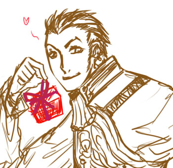 …って、もうこんな時間だぁあああああ! 眠いわけだよね。 実はメガネかけて作業してると眠くならないんですよ。 で、メガネはずすと凄い睡魔。くっそう…。 これだからパソコンってこわい。 最近絵を全然アップしてないので、ノートにSAI入れて描きました。 しかも14日に間に合ってないってね!うふふ! もちろん妄想inしてます。 設定→チョコを作ったはいいが、本人を目の前に恥ずかしくて渡せないでいると、バルが自分からかっさらう。(kimoiyoooo) 本当は凌統の裸エプro(ry チョコをね。作っているところを描いてたんですけど、途中絵がキモくなったので中止。 さて、14日にわたくしに甥ができました。 おばさんですよ、おばさん。 …ありえん orz 絶対におばさんなんて呼ばせませんがww 姉が出産のために少し前から帰ってきてたんですよ。 生まれる前よりも忙しくなりそうです。。うぅ…。